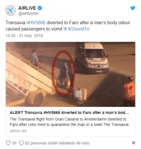 Lo último fue el caso desafortunado de los pasajeros que viajaban en un Boeing 737 de una compañía neerlandesa de nombre Transavia Airlines, en el vuelo que iba de Ámsterdam a Gran Canaria en España, iba un pasajero que desprendía un olor corporal poco agradable por las demás personas.