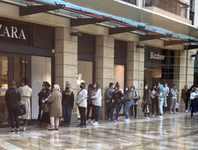 Circulan en redes sociales videos captados esta mañana con imágenes de decenas de personas esperando para comprar en Zara durante el primer día en el que no es necesaria la cita previa.