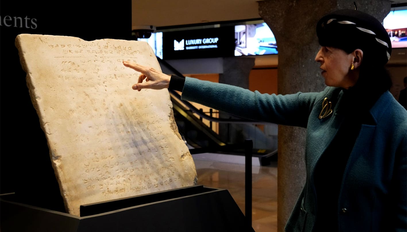 Según Sotheby’s, la losa de mármol fue “descubierta accidentalmente durante excavaciones para un ferrocarril que va de Israel a Egipto”.