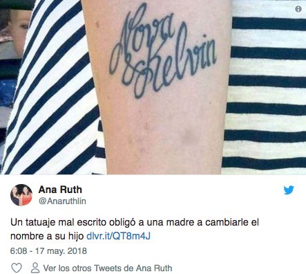 Así que la mujer sin darle más vueltas al asunto decidió cambiarle el nombre a su hijo Kevin, por Kelvin, como estaba escrito como su tatuaje.