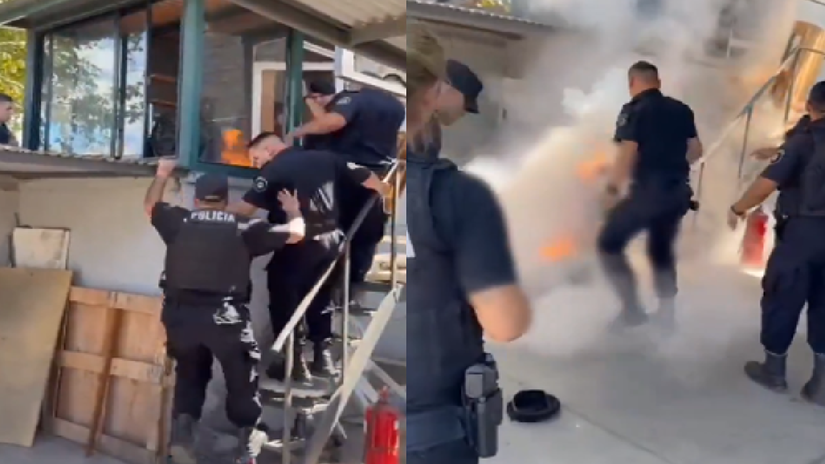 Las llamas avanzaron rápido y alcanzaron a dos policías que estaban cerca. Los agentes reaccionaron con extintores para controlar el fuego, mientras el trabajador logró salir de la estructura y fue asistido por personal de emergencia.