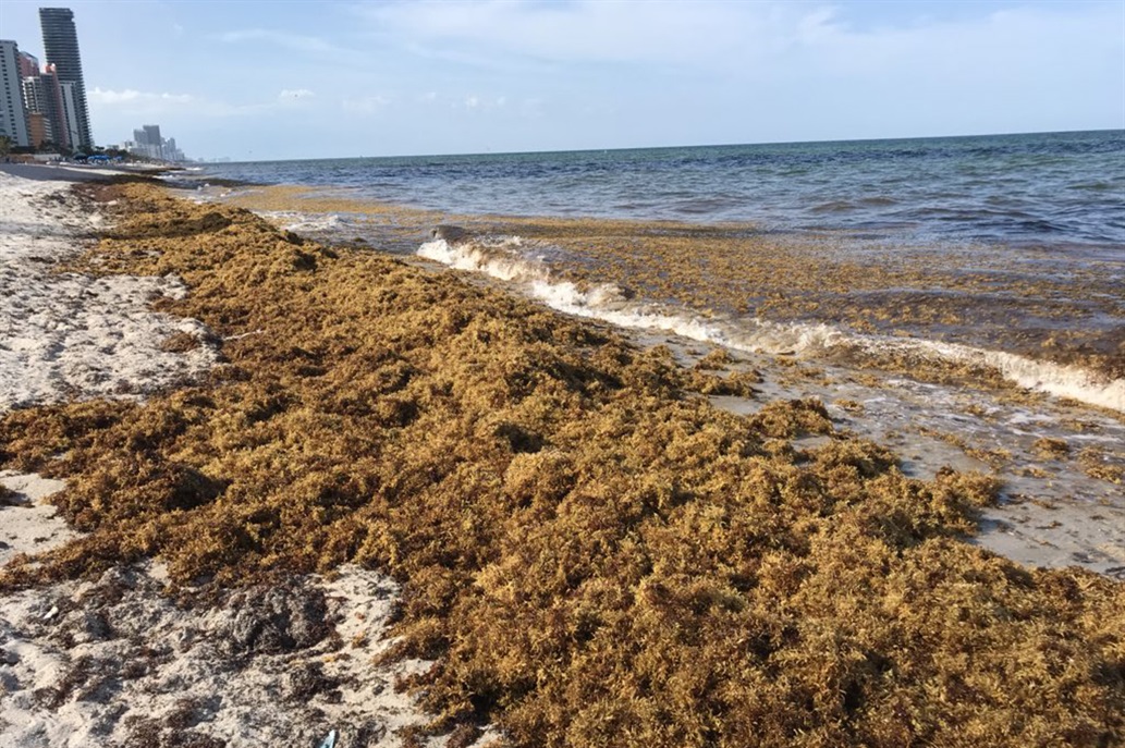 Según The Weather Channel, hay mil millas náuticas dispersas de sargazo en las costas de Hollywood Beach, Dania, South Beach, Fort Lauderdale o Los Cayos.