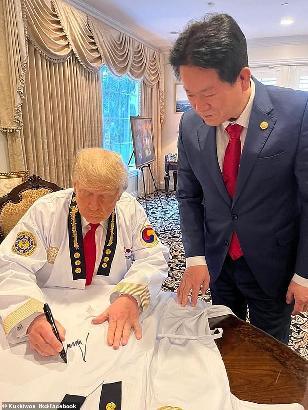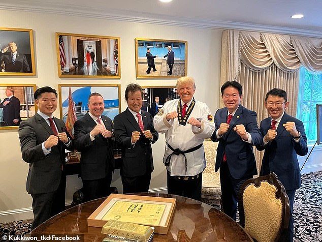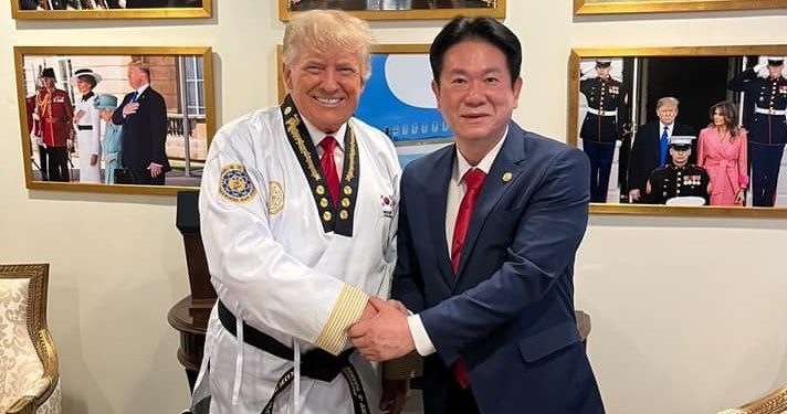 El tan respetado cinturón y certificado fueron entregados a Trump el viernes por Lee Dong-seop, el presidente de Kukkiwon, organización que tiene sede en Seúl. La ceremonia se llevó a cabo en la residencia de Trump en Mar-a-Lago en Florida.