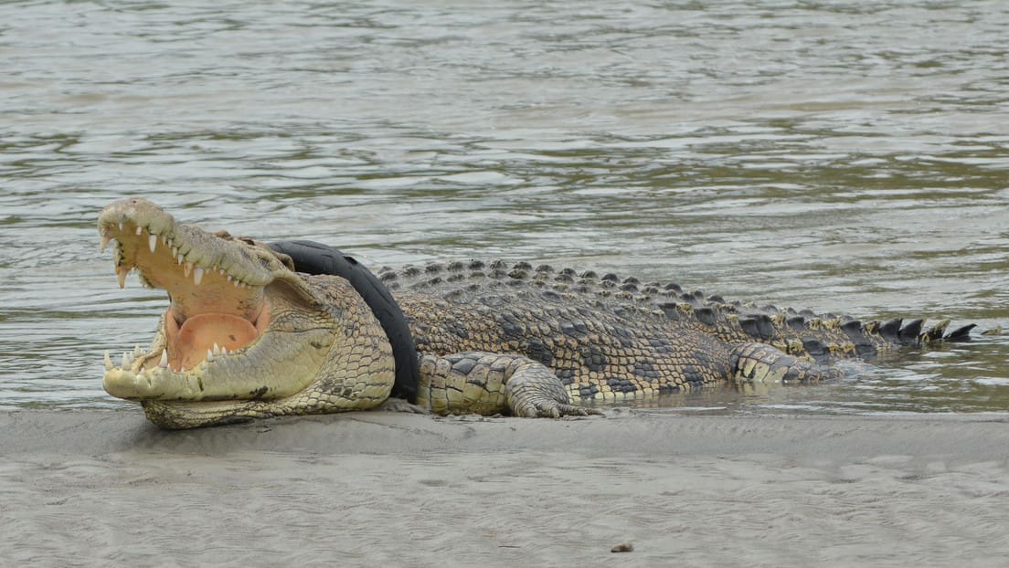 Home Más Noticias Ecología Un cocodrilo llevaba 6 años atrapado en una llanta y fue liberado por un aldeano