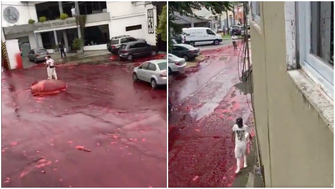 Los vecinos de un barrio se llevaron una muy desagradable sorpresa cuando el tanque de un matadero se reventó y provocó el impresionante derrame de la sangre.