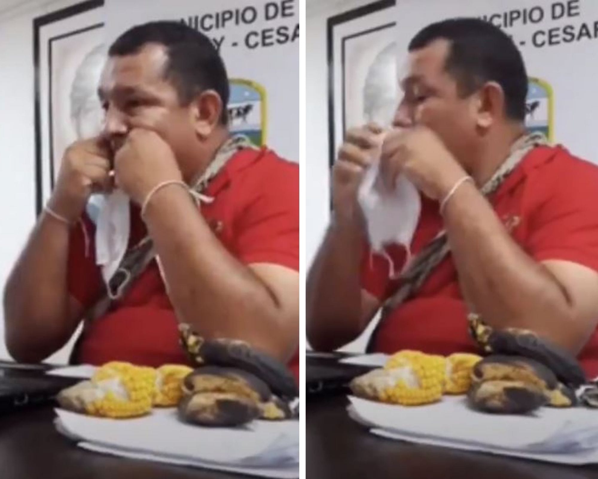 Colombia.- Una autoridad del país suramericano se ha hecho viral y provoco indignación luego de que se le viera en redes sociales usando su cubrebocas como si fuese un hilo dental.