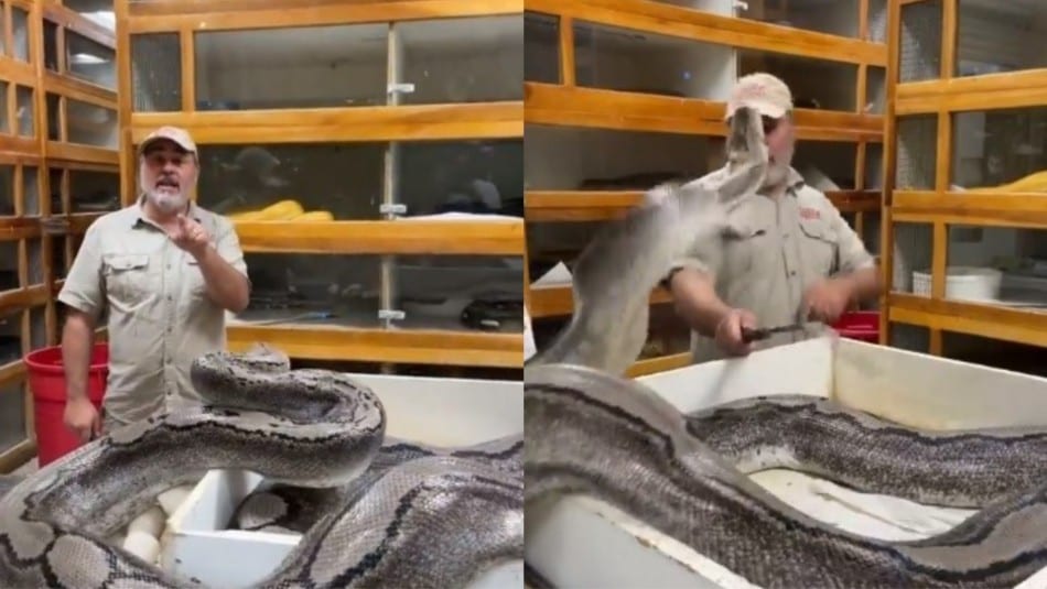 En el registro se ve al hombre con una pitón cuando, de repente, el animal se le acercó llegando hasta su cara, pero el hombre tuvo los reflejos para esquivar al animal y salir ileso del problema, evitando que este lo mordiera.