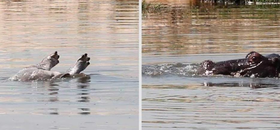 En el parque nacional de Chobe, Botsuana, se grabó una de las escenas más inéditas y dolorosas del mundo animal, se trata de un hipopótamo juvenil que flotaba en un charco con su madre cerca.