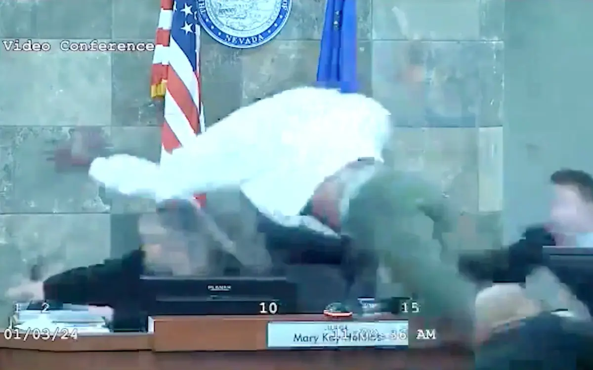 VIDEO: Hombre se abalanza y golpea a jueza en plena sesión en Las Vegas