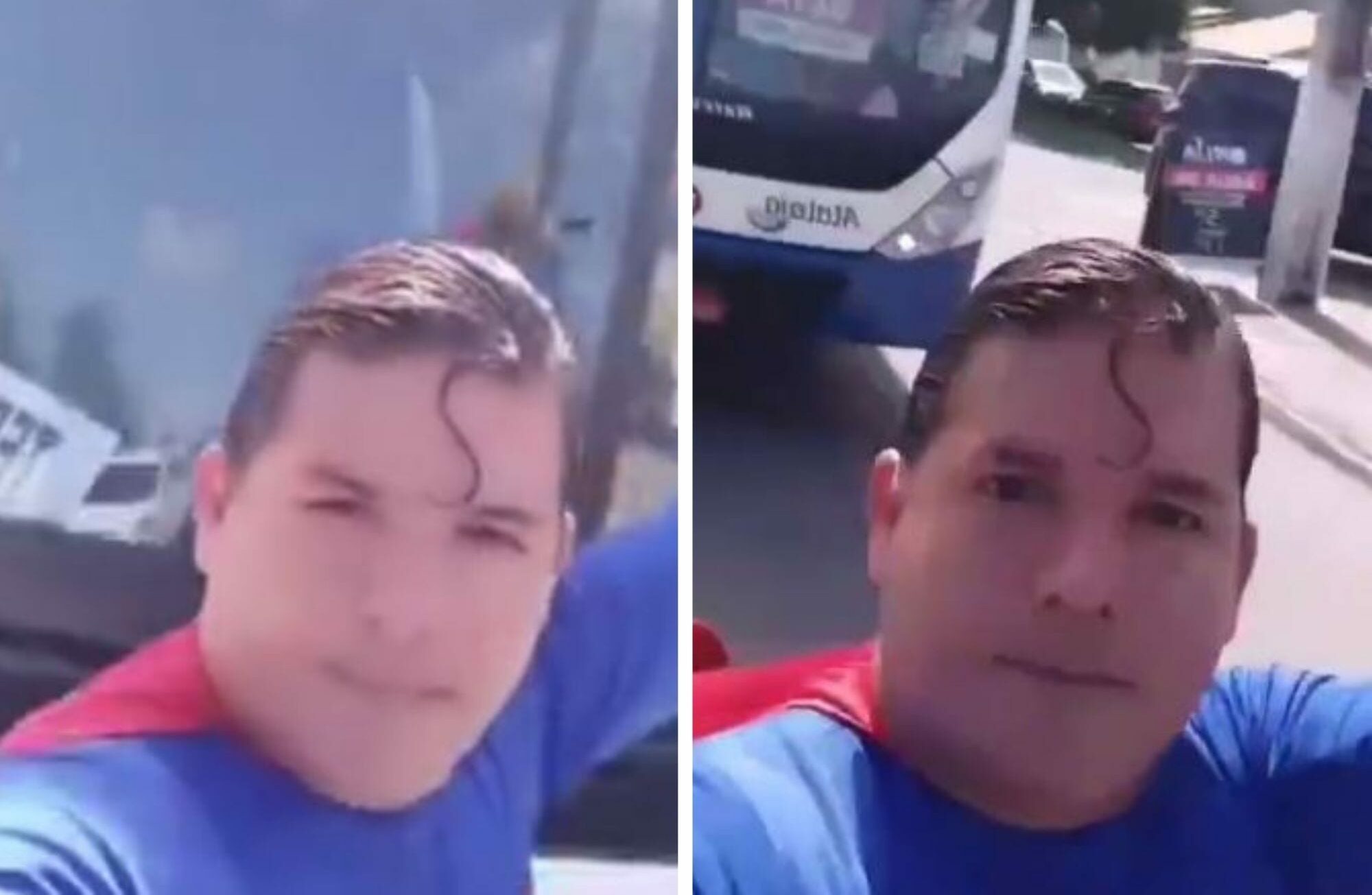 Brasil.- Un comediante casi termina herido de gravedad o con una lesión luego de que, vestido de Superman, se pusiera detrás de un autobús que venía a una velocidad moderada e intentara “detenerlo” con la mano.