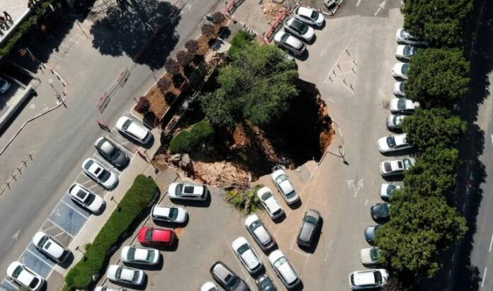 Varios vehículos fueron devorandos por un socavón que iba aumentando su tamaño en el estacionamiento de un hospital de Jerusalén.