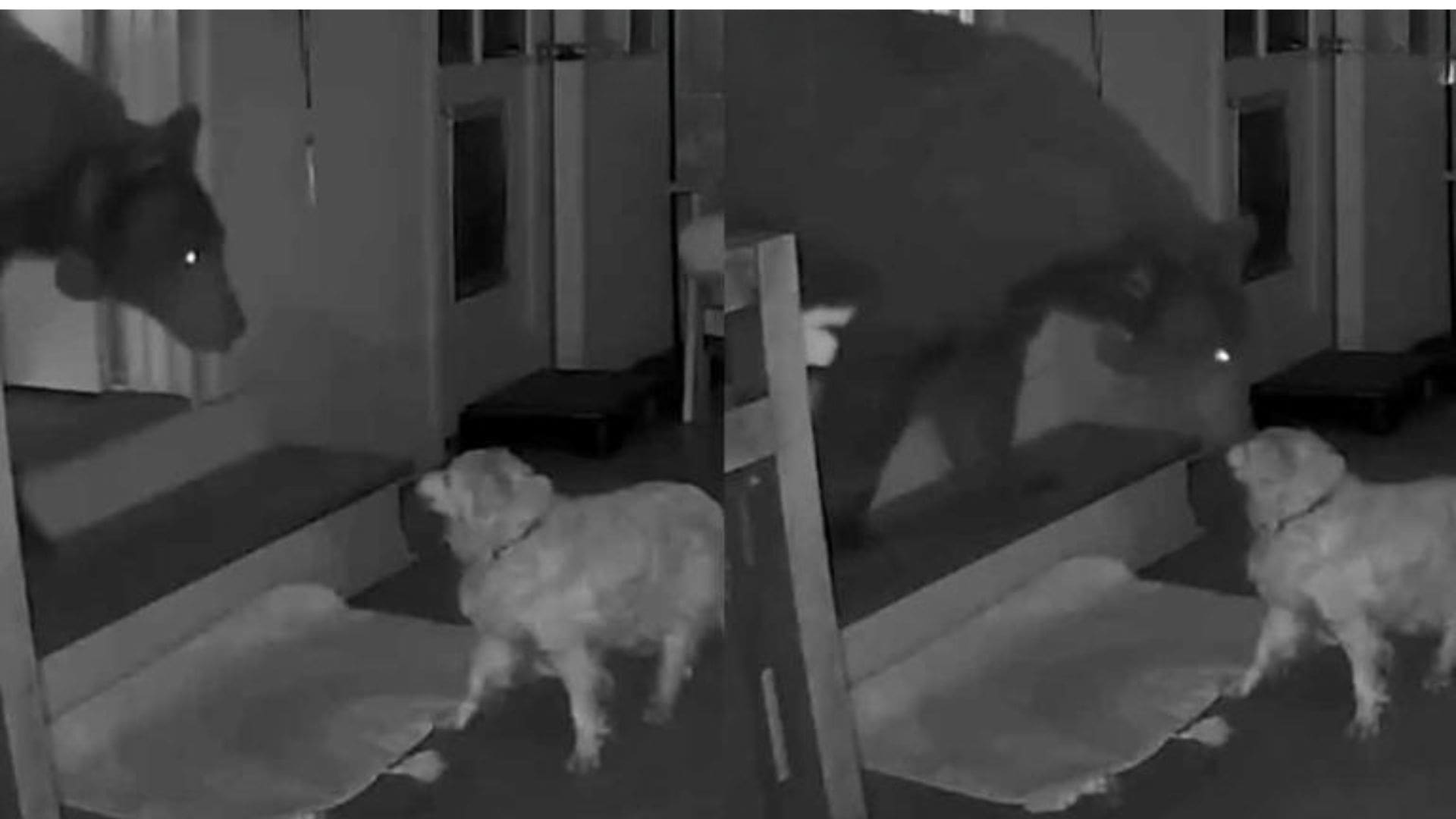 Security camera video caught the moment a bear came nose-to-nose with a dog inside a Southern California home over the weekend. pic.twitter.com/BfOedUGwmV