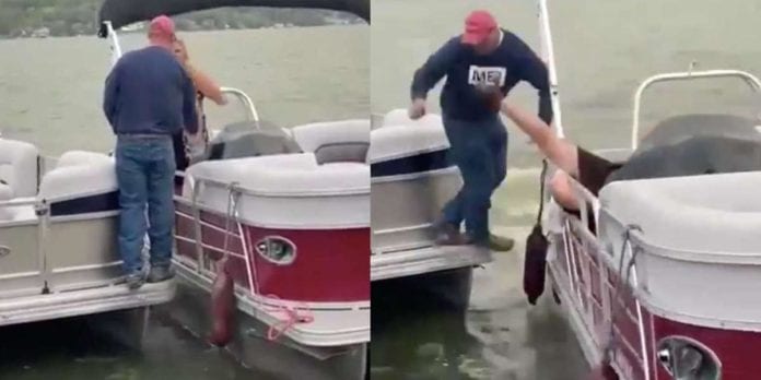 Luego de esto, la mujer cayó dentro del bote que iba a gran velocidad y el hombre, por si fuera poco, cae al agua.