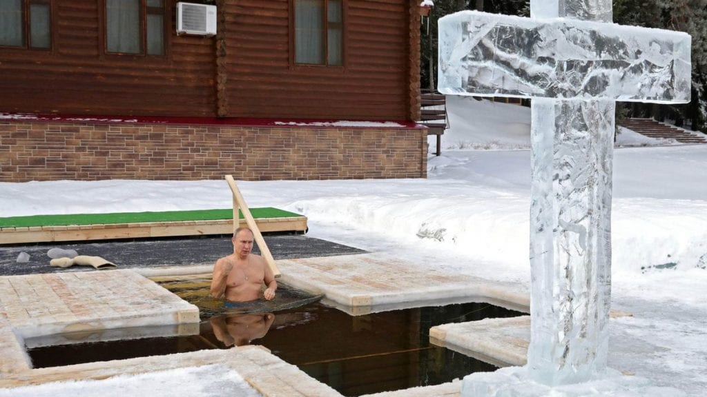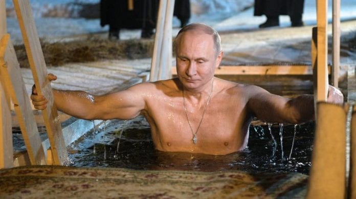 El presidente ruso de 68 años de edad, Vladimir Putin, cumplió una tradición religiosa ortodoxa para celebrar la Epifanía y el bautismo de Cristo.