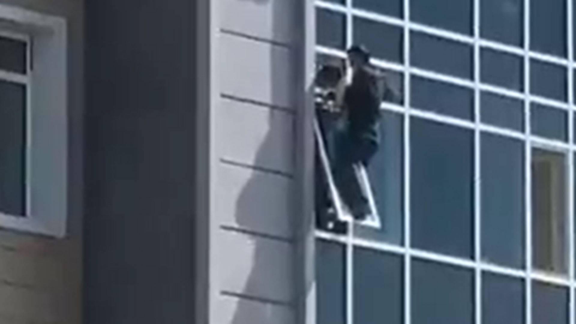 Kazajistán.- En redes sociales se hizo viral un video protagonizado por un hombre que salvó la vida de una niña que estuvo a punto de caer de un 8vo piso.