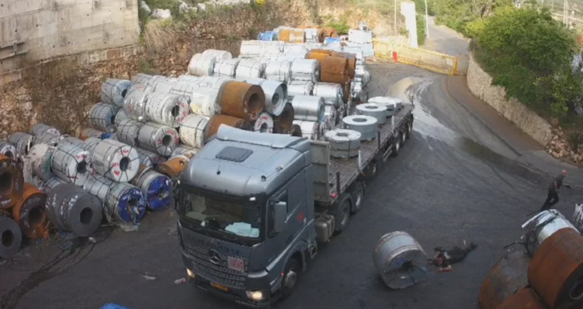 El accidente que quitó la vida al trabajador sucedió en la región de Barkan en Israel. Al menos tres trabajadores, incluida la persona que se accidentó, corrieron hacia donde la enorme bobina de acero comenzó a avanzar tras quedar separada de varias bobinas que estaban en el sitio.