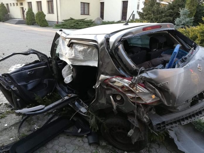 En Polonia, los servicios de emergencia publicaron un video de una accidente vial, que ocurrió el domingo en un lugar llamado Rabien. El conductor, que tiene 41 años, chocó contra una rotonda y se estrelló contra una iglesia.