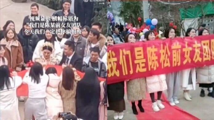 El hombre, apellidado Chen y habitante de la provincia suroccidental de Yunnan, se sorprendió cuando en su casamiento, a principios de febrero, irrumpieron 12 mujeres que portaban una gran pancarta con el mensaje “Somos el equipo de las exnovias de Chen, hoy te destruiremos”.