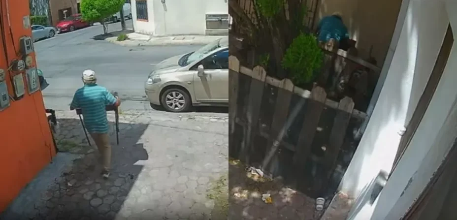 Un adulto mayor fue captado por cámaras de seguridad mientras robaba un asador del patio de una vivienda en el municipio de Guadalupe, en el estado de Nuevo León.