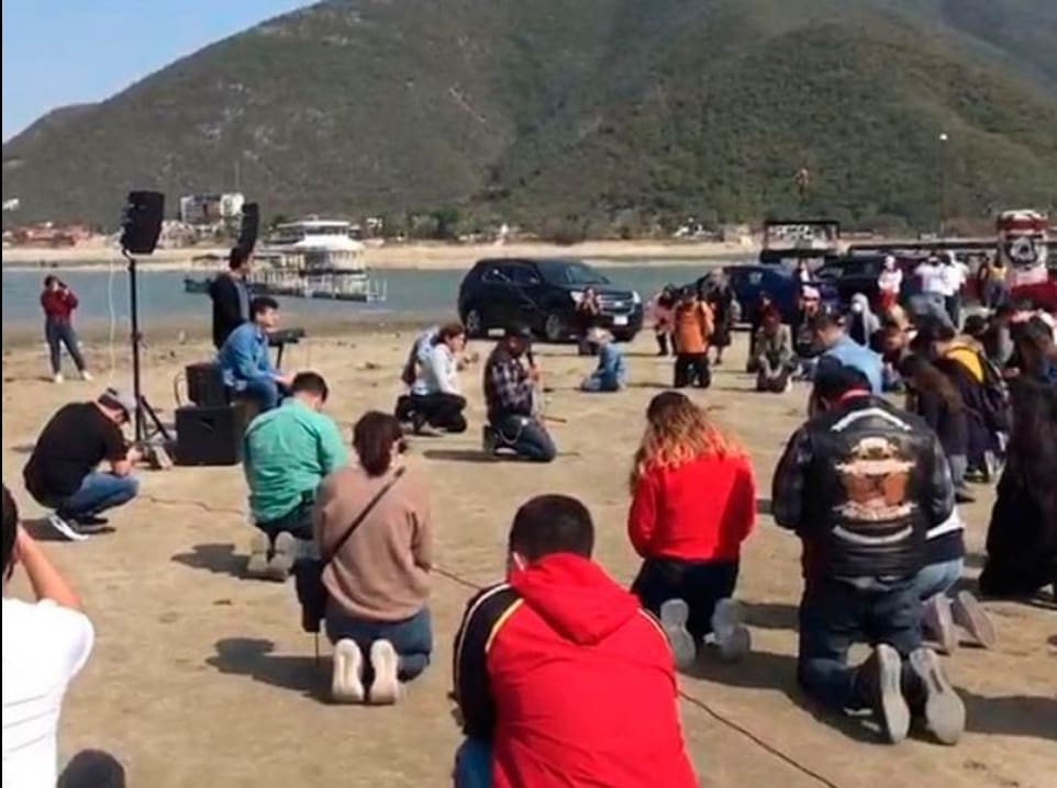 En el video que llegó a la redacción de ABC Noticias, se muestra a decenas de personas hincadas en la zona, pidiendo al cielo por lluvia que pueda enmendar la sequía que se vive en Nuevo León.