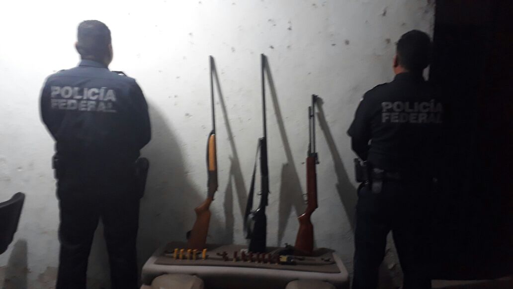 Chetumal.- Detiene la Policía Federal a dos personas con armas largas y cortas, quienes presuntamente se habían robado un camión de carga, en la carretera a Escárcega.