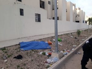 Casi de forma simultánea, en la avenida Chi, entre Sur y Gansos, vecinos reportaron al 911 el hallazgo de una persona herida de bala, pero al acudir la patrulla de la Policía Municipal, comprobó que se trataba de una persona ya sin vida.