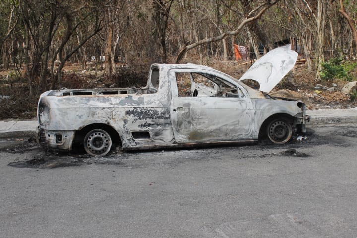 Puerto Aventuras.- Una camioneta tipo Pick Up fue incendiada aparentemente de forma intencional, cerca de una colonia irregular en dicha comunidad.