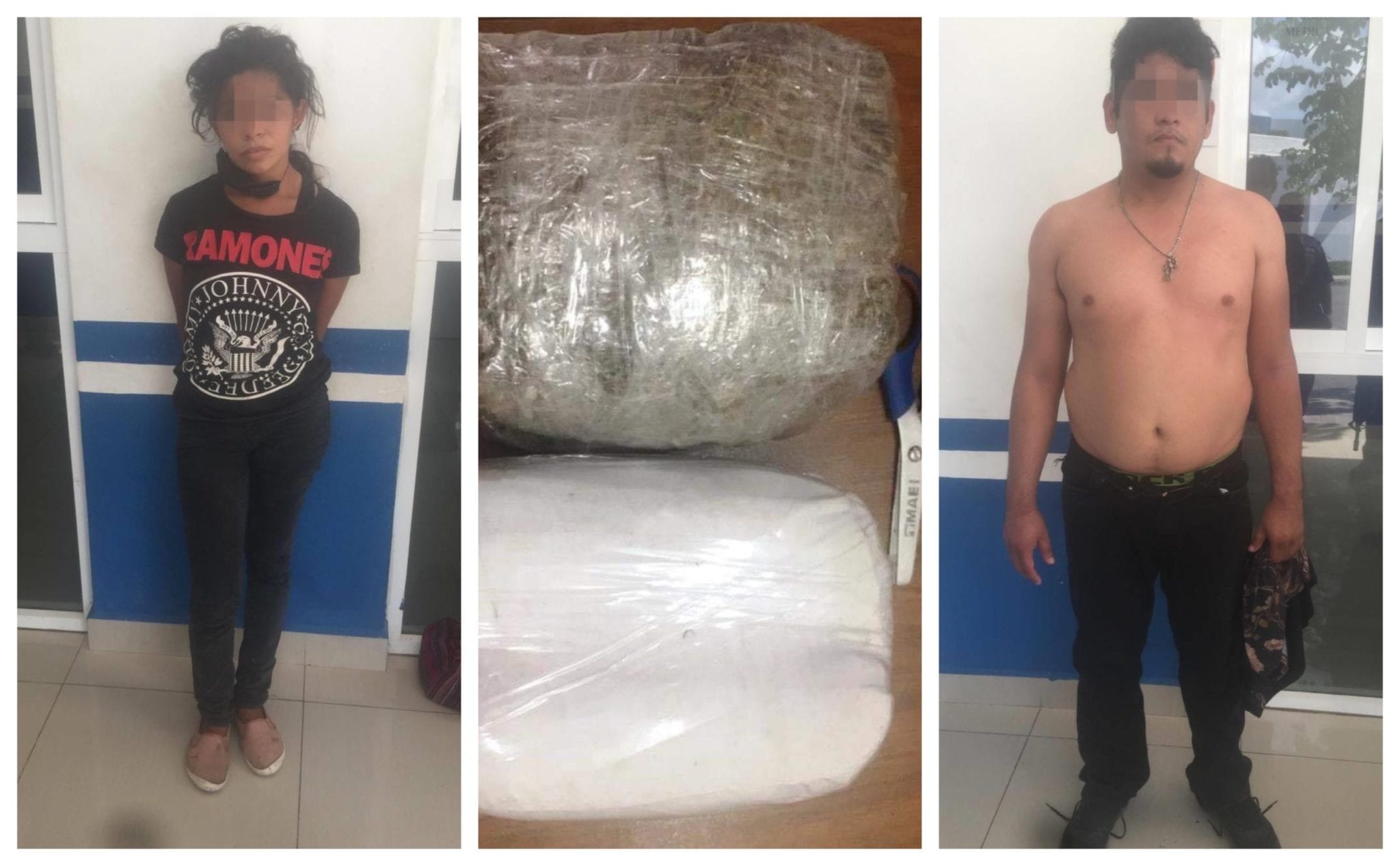 Playa del Carmen.- Una mujer y un hombre que aventaron dos ladrillos de marihuana al interior del Centro de Retención Municipal de esta ciudad fueron descubiertos y detenidos por policías municipales.