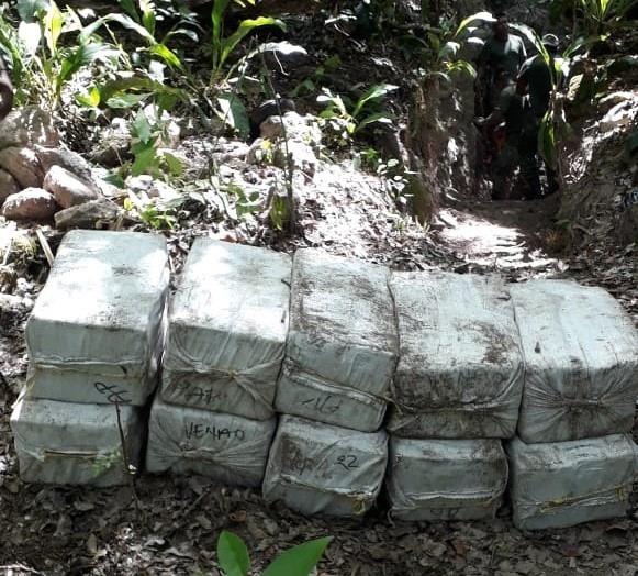 “Derivado de lo anterior, se iniciaron reconocimientos terrestres a inmediaciones del área, localizando en citada localidad, ocultos entre la maleza, 48 costales conteniendo en su interior 20 paquetes cada uno, con un peso total aproximado de 960 kilogramos de un polvo blanco con las características propias de la cocaína”, se indica.