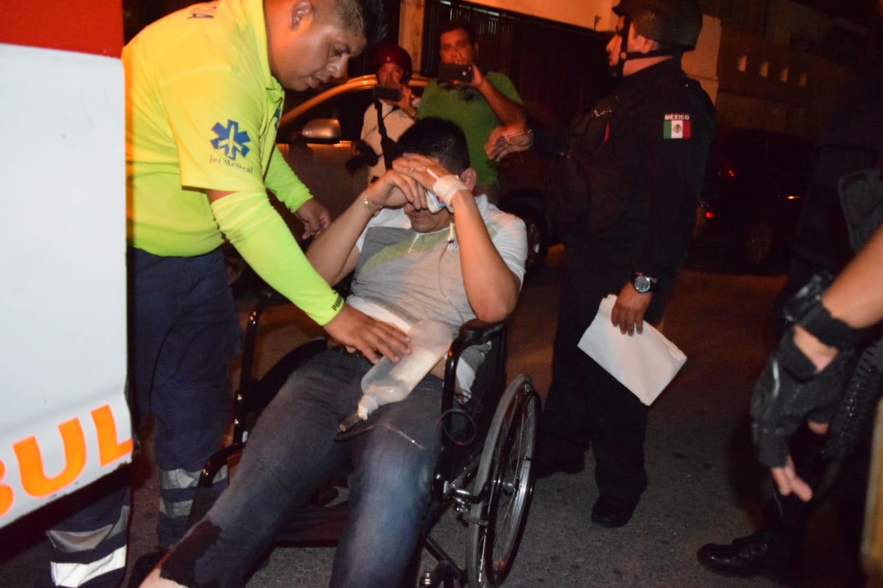 El acompañante presentaba un balazo en la cabeza, por lo que fue trasladado a la clínica del IMSS de la 510. En tanto, la otra víctima, con un disparo en la pierna, fue trasladada al hospital Galenia, pero de allí, ya identificada, fue llevado fuertemente custodiado al Hospiten, donde permanece como lesionada.