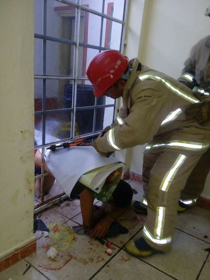 Chetumal.- Cerca de seis horas permaneció un ladrón atascado en el marco de un vidrio en la puerta de una iglesia, hasta que fue auxiliado por bomberos, en esta ciudad capital.