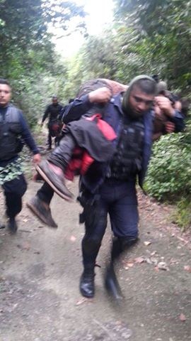 PLAYA DEL CARMEN, MX.- Siguiendo un rastro de sangre en plena selva, elementos de la Dirección General de Seguridad Pública encabezados por su comandante Luis Alfonso Pérez Maldonado, encontraron a una persona herida a quien le salvaron la vida.