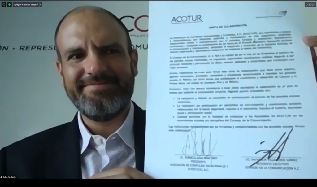 México.-Esta tarde, fue firmado un acuerdo de colaboración entre la Asociación de Complejos Vacacionales y Turísticos (ACOTUR) y el Consejo de la Comunicación (CC), que buscan abordar temas prioritarios con campañas de comunicación que influyan en el ánimo y buenos hábitos de la población de Quintana Roo y de México.
