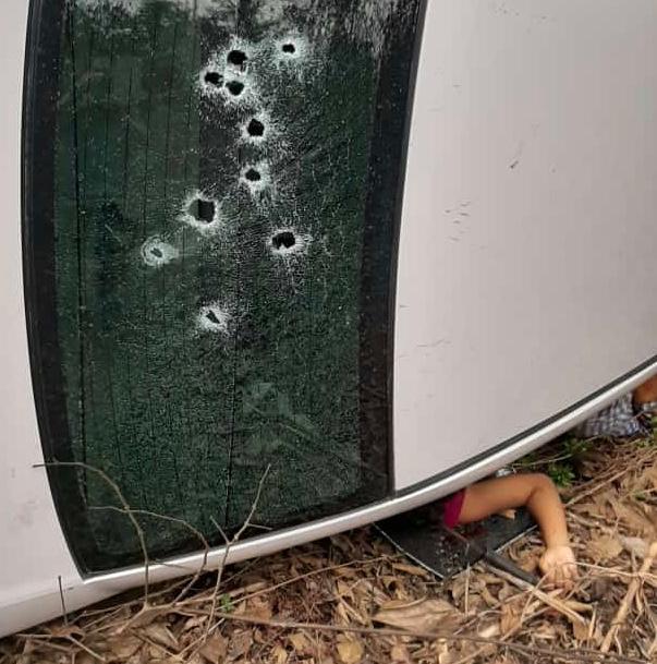 El automóvil quedó con más de 30 impactos de bala, al parecer de calibre .223.