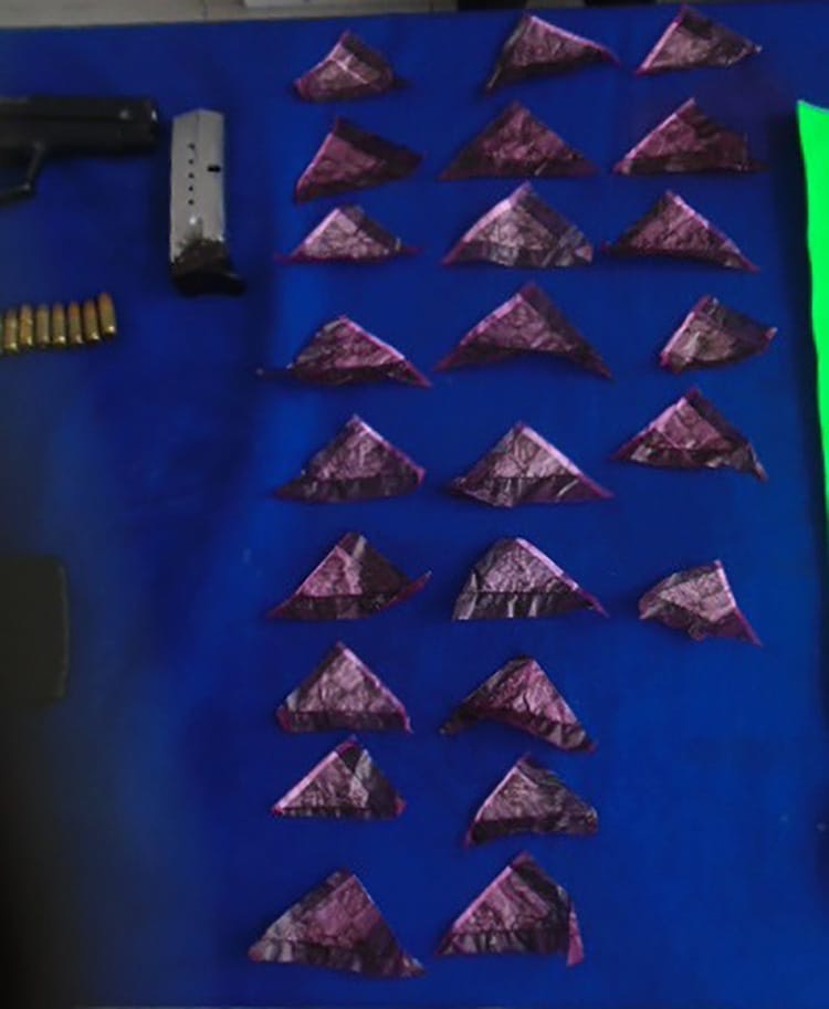 Durante la inspección de la camioneta y el conductor se localizaron siete bolsitas de plástico morado que en su interior tenían polvo blanco al parecer cocaína, en tanto que los tripulantes tenían 12 bolsitas y 31 respectivamente.