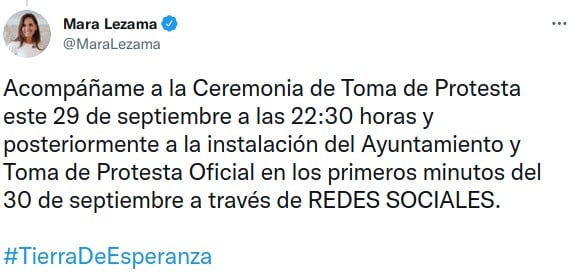 Las actividades de tona de protesta concluirán en Benito Juárez a las 22:30, donde Mara Lezama Espinosa rendirá protesta por un segundo periodo de gobierno.