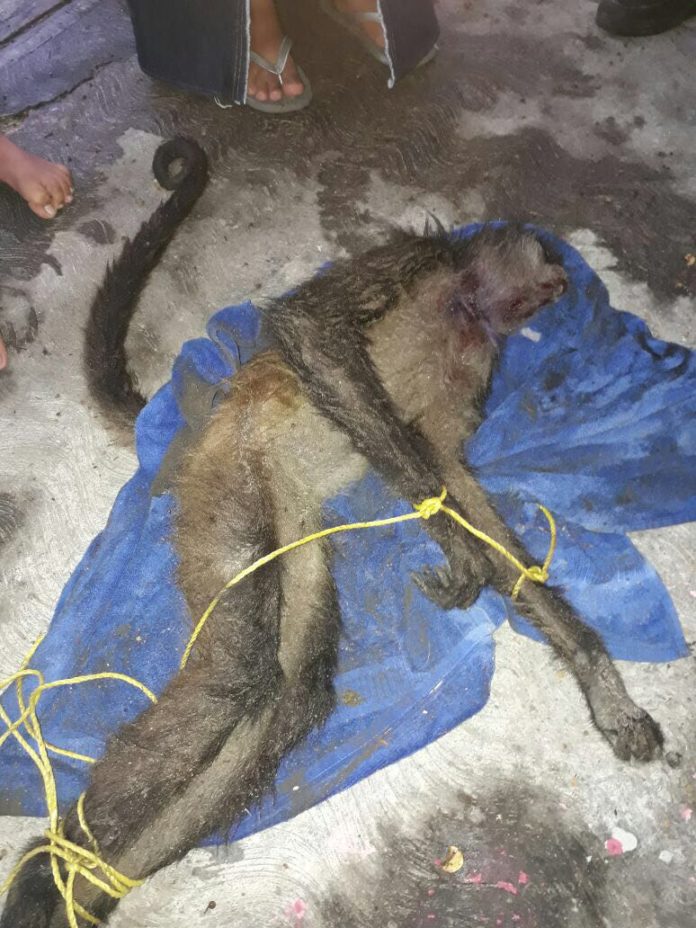 Aunque se le brindó atención médica, el primate estaba gravemente herido, incluso con una lesión en el cuello, por lo que es poco probable que sobreviva.