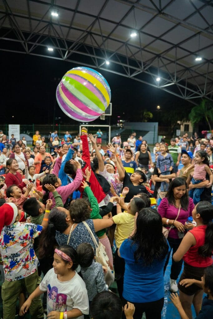 Los niños y sus familias disfrutaron de un show musical navideño con animación, participaron en talleres creativos como escritura de cartas a Santa Claus, pintura de alcancías y elaboración de manualidades. Además, se divirtieron en juegos inflables y diversas dinámicas alrededor del escenario.