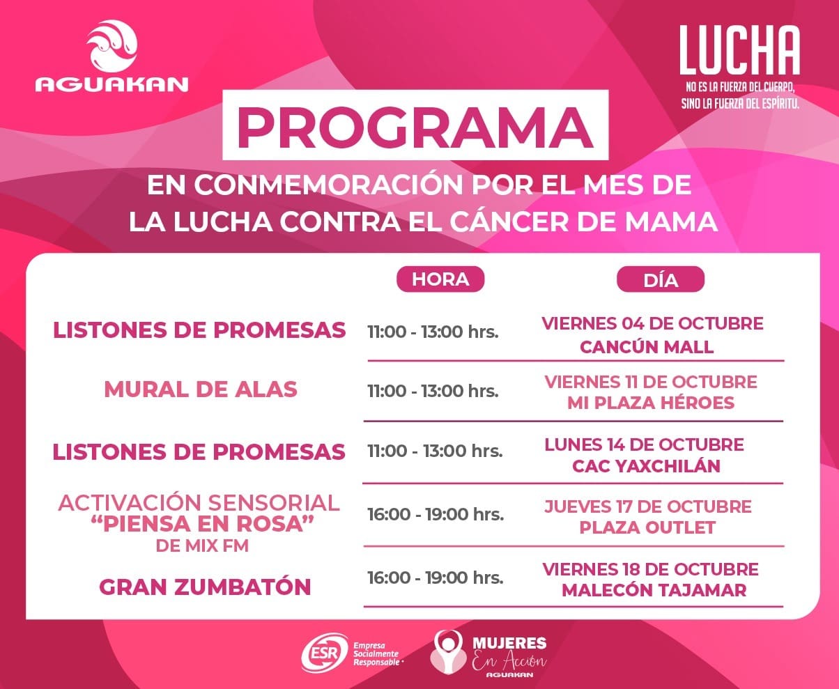 Aguakan tendrá varias actividades en el mes de concientización del cáncer de mama