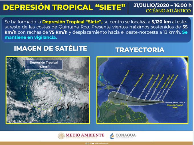 Apenas unas horas antes, la Comisión Nacional del Agua (Conagua) emitió un aviso por este fenómeno, a más de cinco mil kilómetros al este de las costas de Quintana Roo. Tal como estaba previsto, al avanzar la tarde, la formación continuó fortaleciéndose, hasta lograr vientos sostenidos de 55 kilómetros por hora.