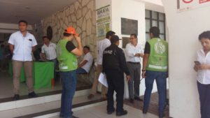 Auxiliados con unidades caninas, traídas desde el Aeropuerto Internacional de Cancún, la revisión continúo en las demás direcciones en el palacio, tanto en el edificio principal, como en las oficinas aledañas.