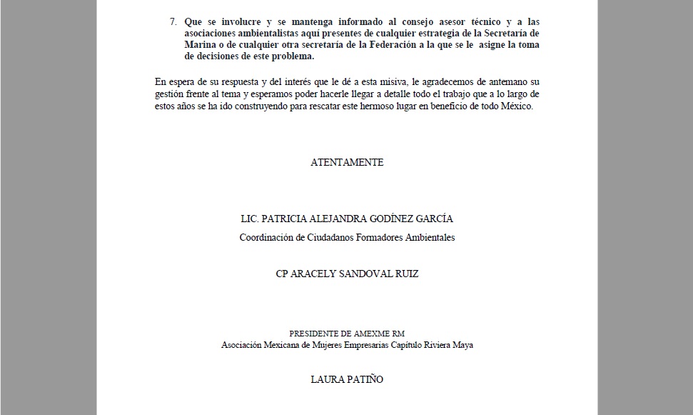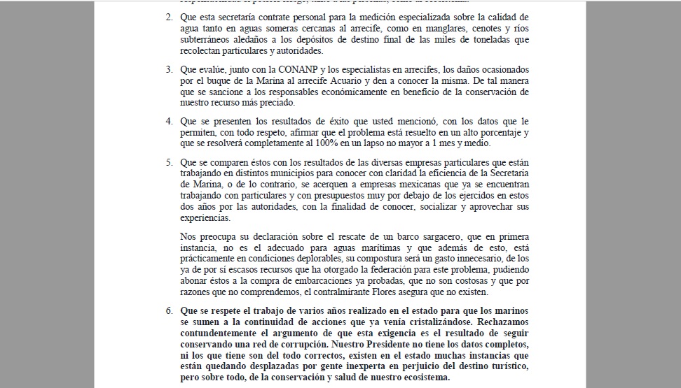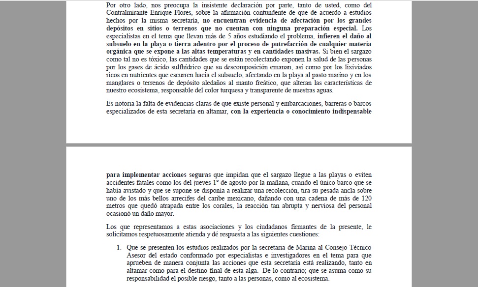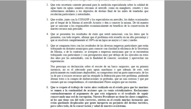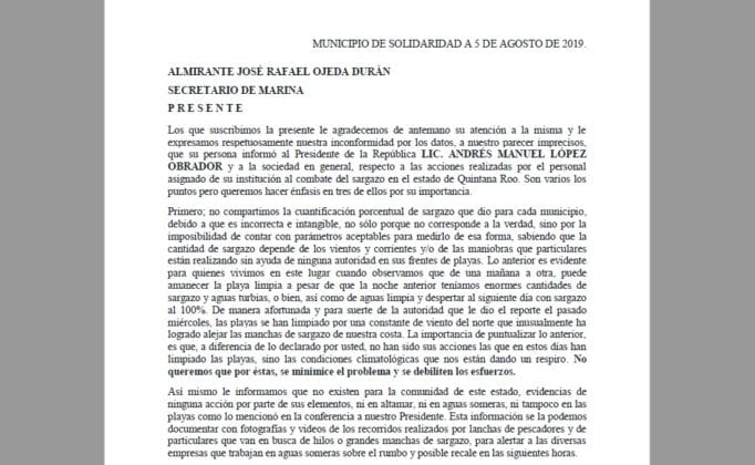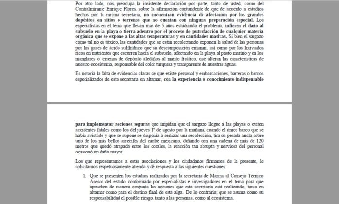 Principalmente, lo que piden las quejosas es que se contrate a personal para la medición además que se traiga a empresas locales que traen proyectos para atender el sargazo, por montos inferiores a los que se utilizan actualmente.