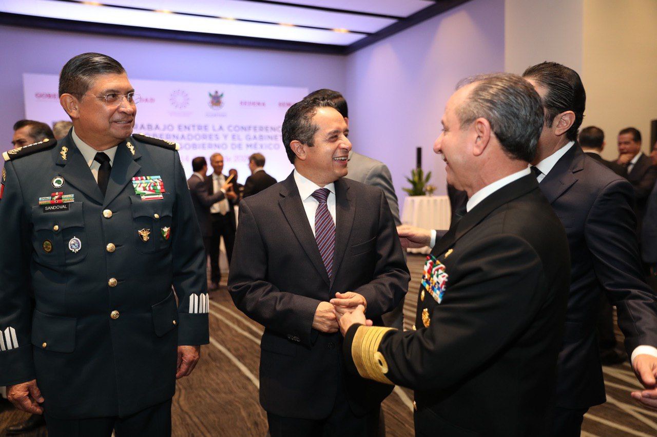 Cancún.- Anteponer la neutralidad política en materia de seguridad fue una de las conclusiones de la reunión de trabajo que sostuvieron ayer con el gabinete federal de Seguridad los gobernadores de la Conago, entre quienes ha destacado como mediador el mandatario de Quintana Roo, Carlos Joaquín, cuya estrategia en esta entidad ha mantenido un trabajo conjunto con las fuerzas federales y es similar, incluso, al Plan del presidente Andrés Manuel López Obrador.