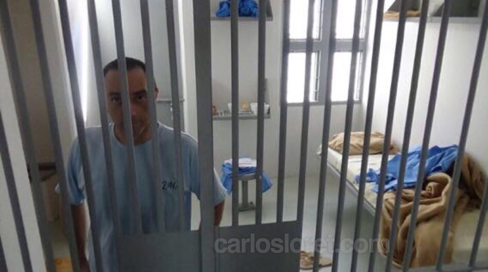 “El catre está desordenado, él lleva una playera azul, se le ve flaco y demacrado tras los barrotes”, dice Loret de Mola.