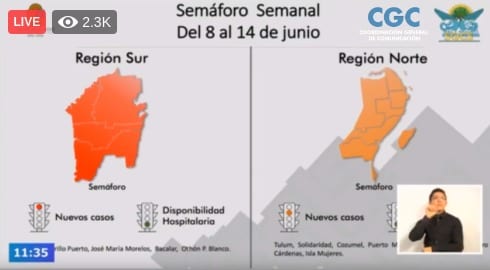 Chetumal.- A partir de mañana arranca el semáforo epidemiológico estatal, complementario al federal, que para la zona norte será colocada en color naranja, mientras el sur continuará en rojo, reveló hoy el gobernador Carlos Joaquín González.