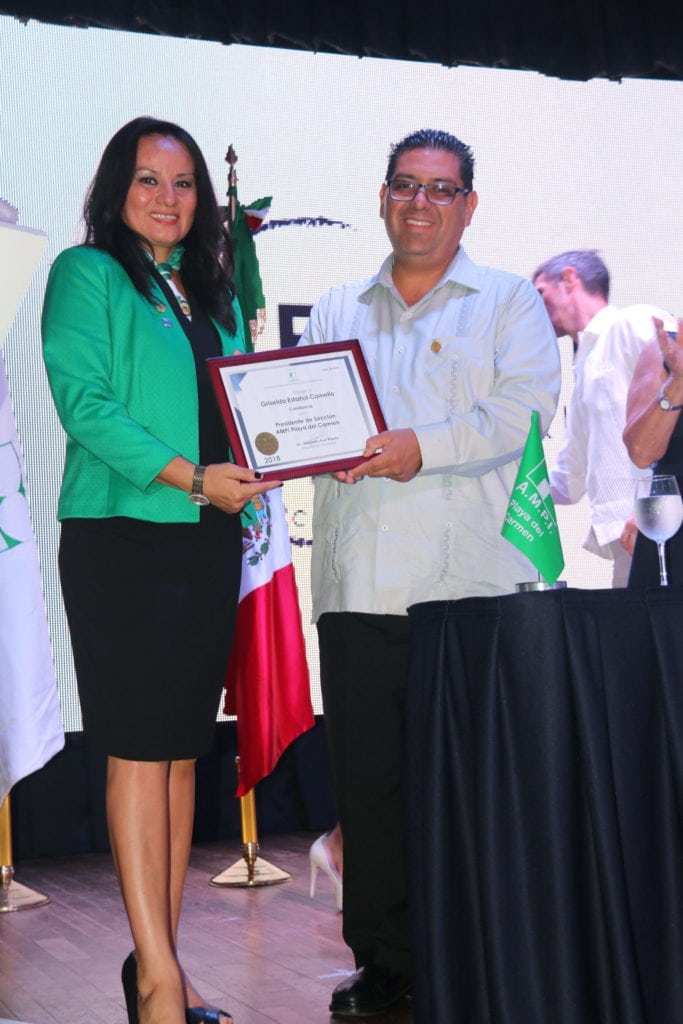En el marco del Foro Inmobiliario, se entregó un nombramiento especial por parte de AMPI Nacional a Griselda Estañol Cornelio, por desempeñar su labor, dejando la constancia como Presidente de Sección AMPI Playa del Carmen.