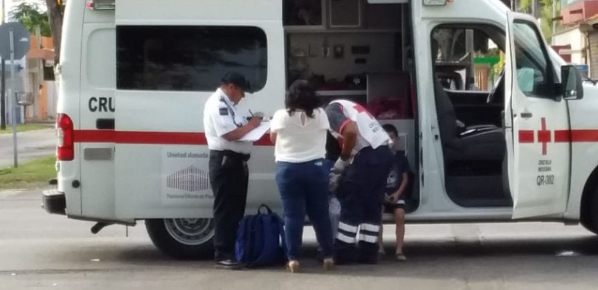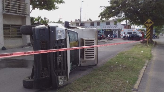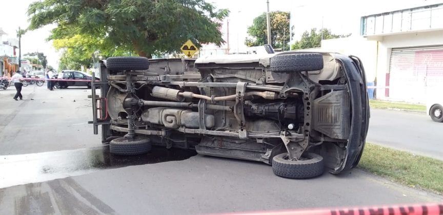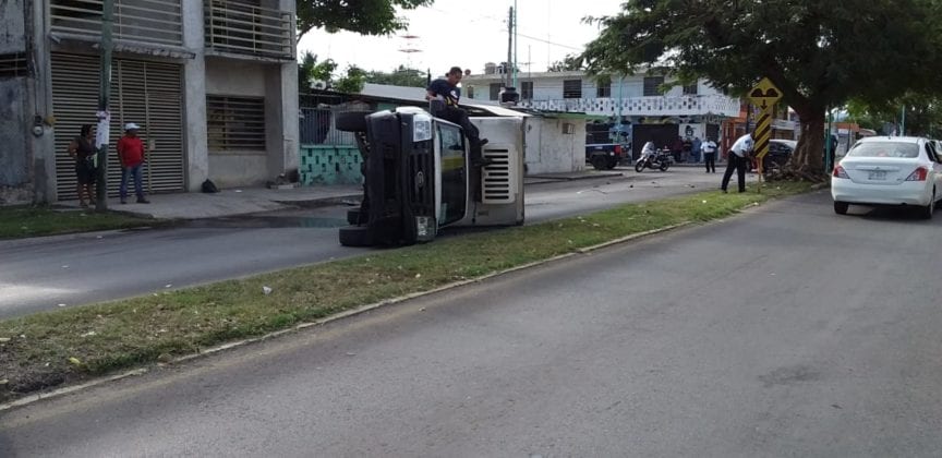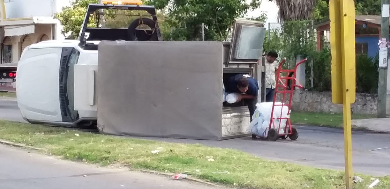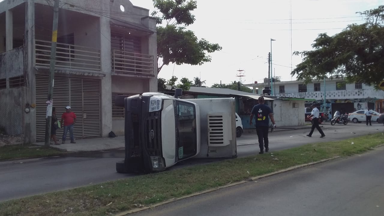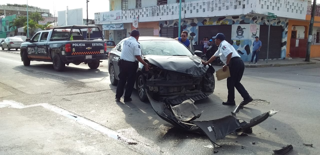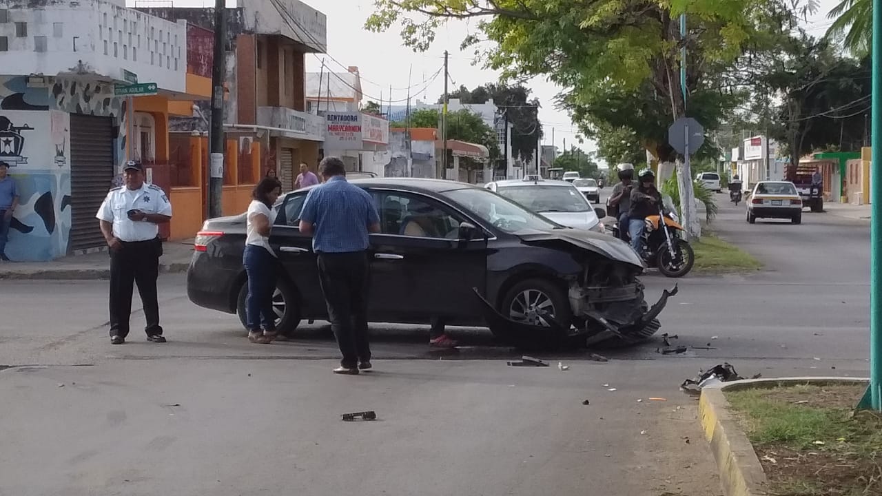 Chetumal.- Un aparatoso accidente se registró esta mañana sobre la avenida Francisco I. Madero con Efraín Aguilar donde una familia sufrió crisis nerviosa por haber sido impactado el auto en que viajaban por un camión repartidor de hielo que se voló el alto.