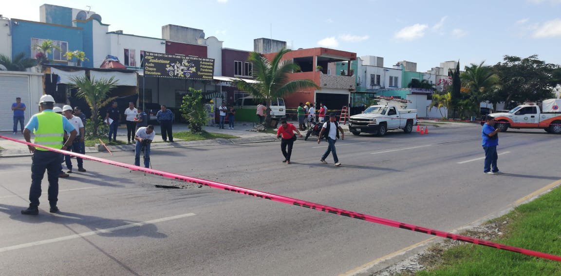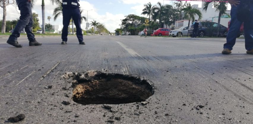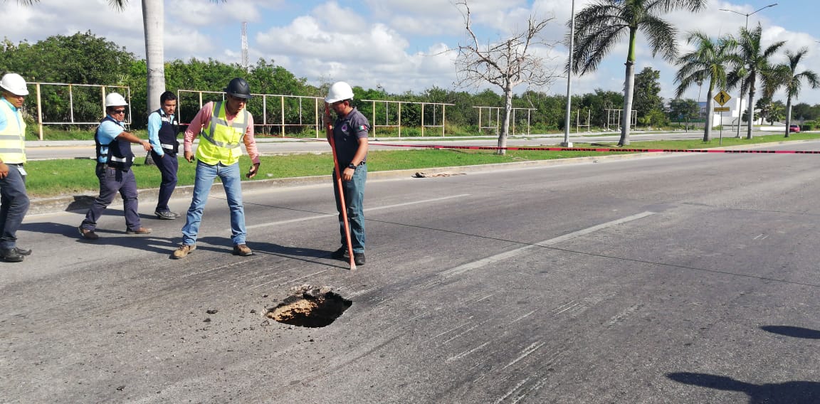 Playa del Carmen.- La aparición de un socavón en el Arco Vial obligó al cierre total de la circulación de sur a norte sobre esta avenida, entre las avenidas 28 de Julio y Playa del Carmen, a la altura del fraccionamiento Villamar 1.