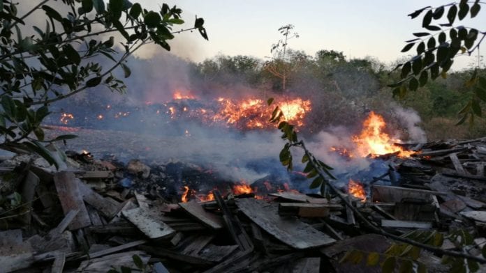 Playa del Carmen.- Un basurero clandestino oculto en la selva entre los fraccionamientos Marsella y Las Palmas 2 comenzó a arder esta tarde, amenazando con salirse de control.