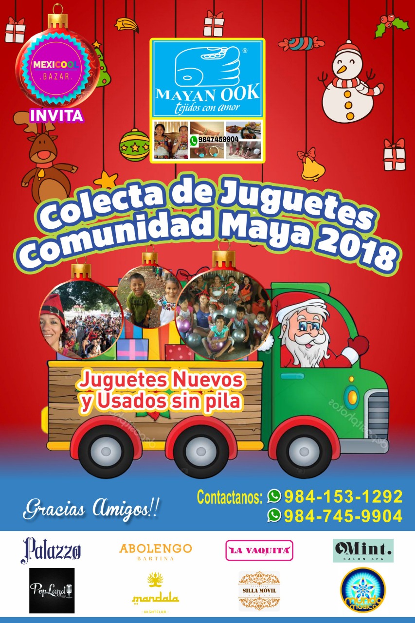 Playa del Carmen, Quintana Roo.- La edición 2018 de la colecta anual de juguetes para la Comunidad Maya organizado por Mexicool y Mayan Ook, inicia durante la presente semana y continuará hasta el próximo 20 de diciembre.